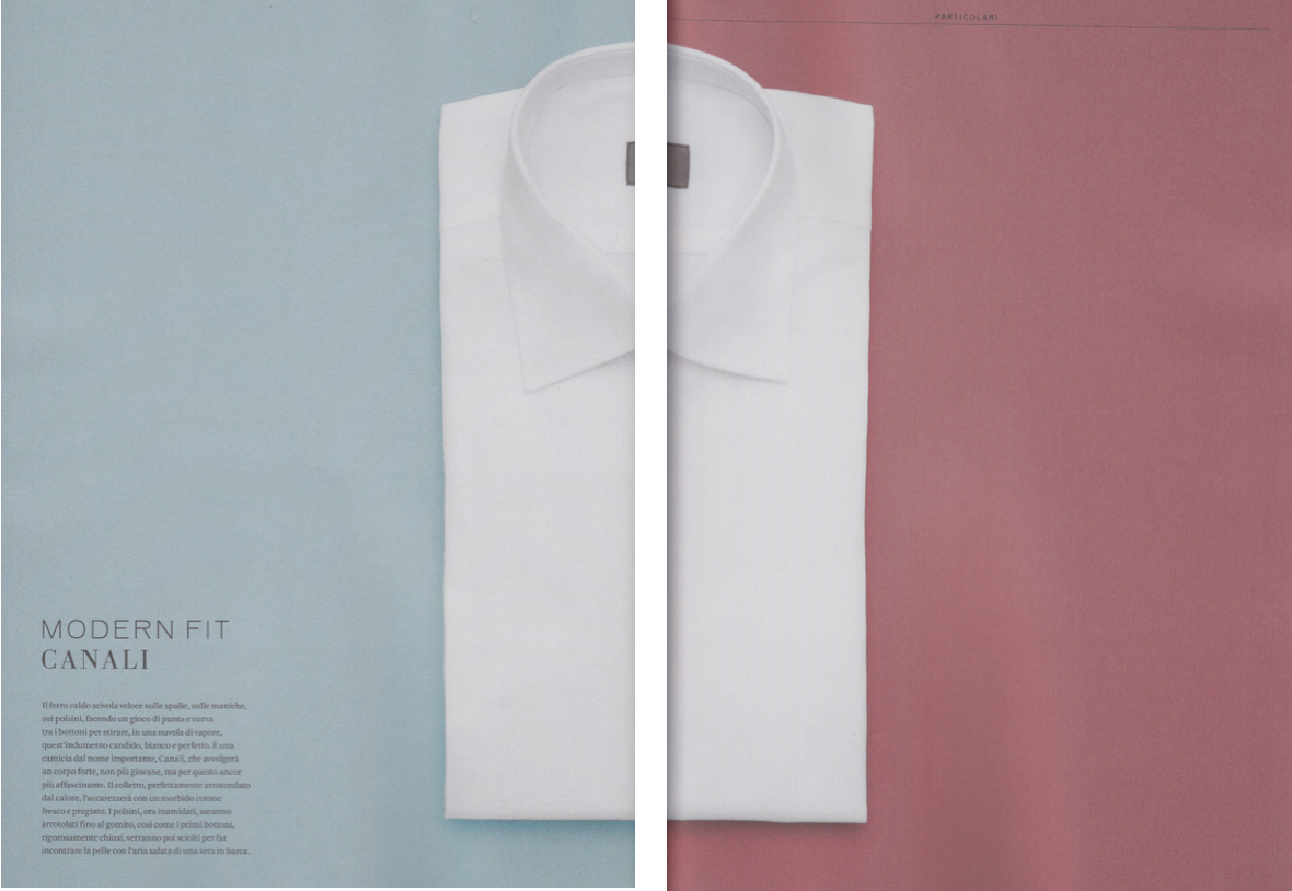Il ferro caldo scivola veloce sulle spalle, sulle maniche, sui polsini, facendo un gioco di punta e curva tra i bottoni per stirare, in una nuvola di vapore, quest'indumento candido, bianco e perfetto. E' una camicia dal nome importante, Canali, che avvolgerà un corpo forte, non più giovane, ma per questo ancor più affascinante. Il colletto, perfettamente arrotondato dal calore, l'accarezzerà con un morbido cotone fresco e pregiato. I polsini, ora inamidati, saranno arrotolati fino al gomito, così come i primi bottoni, rigorosamente chiusi, verranno poi sciolti per far incontrare la pelle con l'aria salata di una sera in barca.