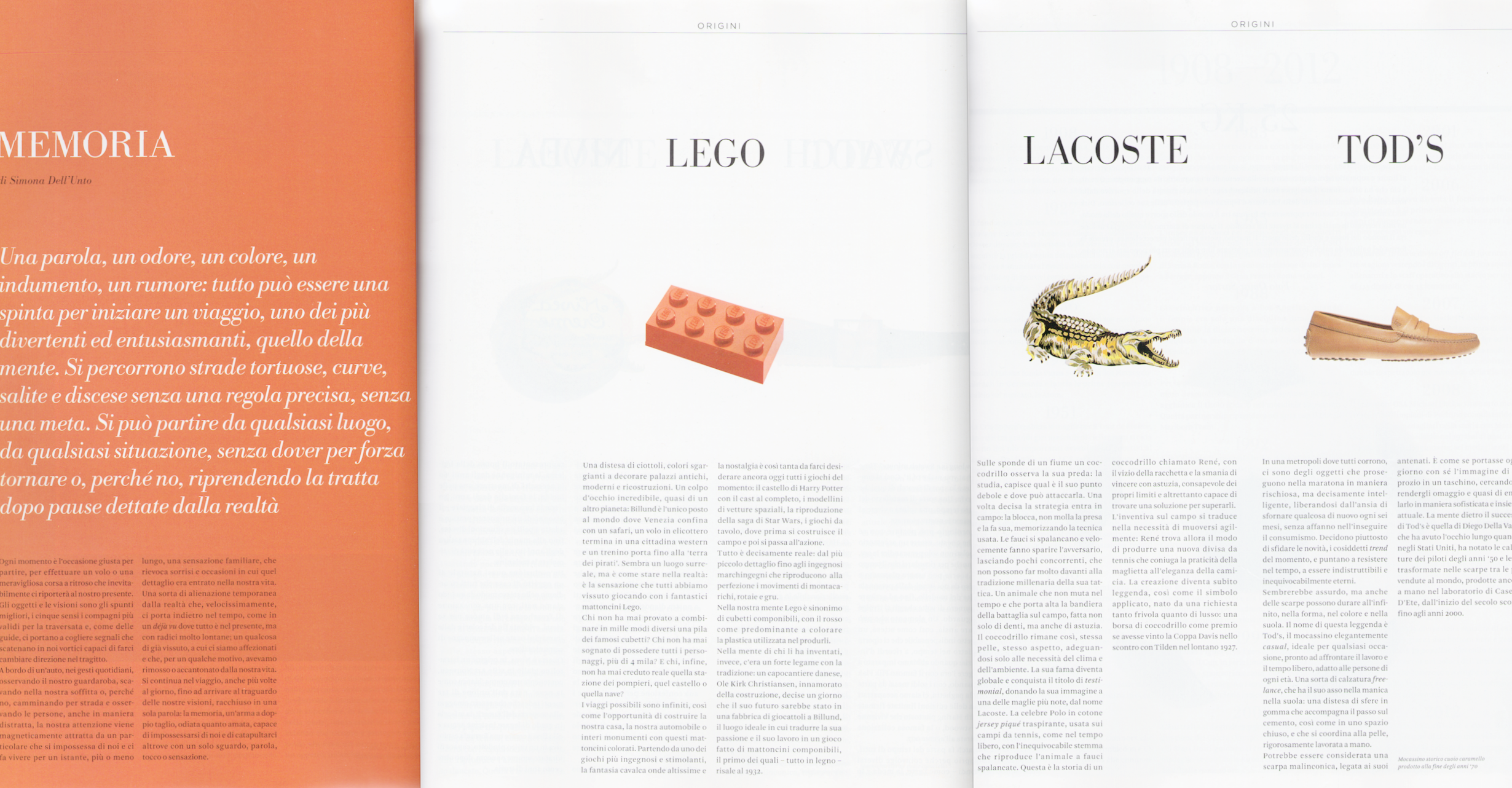 Ogni momento è l'occasione giusta per partire, per effettuare un volo o una meravigliosa corsa a ritroso che inevitabilmente ci riporterà al nostro presente. Gli oggetti e le visioni sono gli spunti migliori, i cinque sensi i compagni più validi per la traversata e, come delle guide, ci portano a cogliere segnali che scatenano in noi vortici capaci di farci cambiare direzione nel tragitto. A bordo di un auto, nei gesti quotidiani, osservando il nostro guardaroba, scavando nella nostra soffitta o, perché no, camminando per strada e osservando le persone, anche in maniera distratta, la nostra attenzione viene magneticamente attratta da un particolare che si impossessa di noi e ci fa vivere per un istante, più o meno lungo, una sensazione familiare, che rievoca sorrisi e occasioni in cui quel dettaglio era entrato nella nostra vita. Una sorta di alienazione temporanea della realtà che, velocissimamente, ci porta indietro nel tempo, come in un déjà vu dove tutto è nel presente, ma con radici molto lontane; un qualcosa di già vissuto, a cui ci siamo affezionati e che, per un qualche motivo, avevamo rimosso o accantonato nella nostra vita. Si continua nel viaggio, anche più volte al giorno, fino ad arrivare al traguardo delle nostre visioni, racchiuso in una sola parola: memoria, un'arma a doppio taglio, odiata quanto amata, capace di impossessarsi di noi e di catapultarci altrove con un solo sguardo, parola, tocco, sensazione.